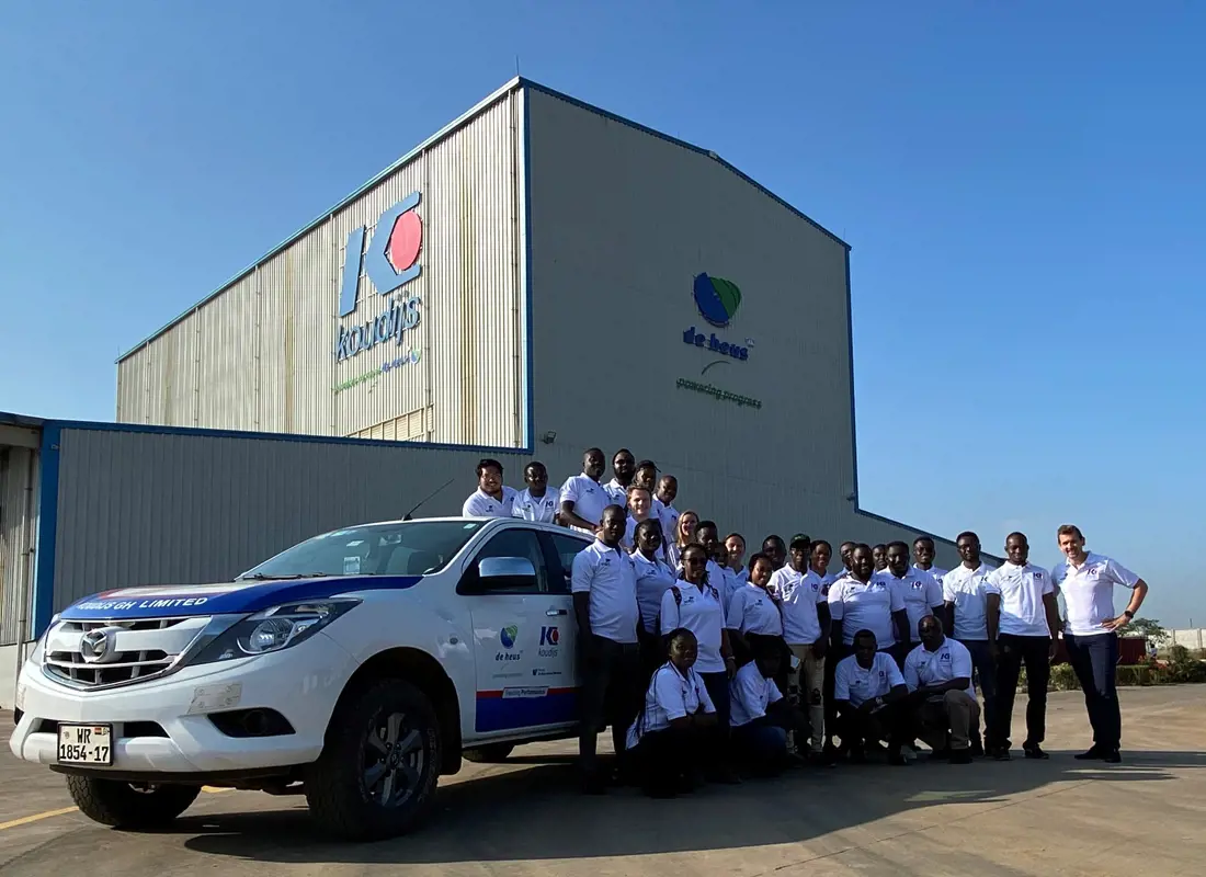 V roku 2021 sme začali s výrobou krmív v Ghane a miestna obchodná jednotka začala iniciovať projekty na získavanie kukurice z miestnych zdrojov. Naším partnerom v tejto oblasti je Warc Africa (ďalej len "Warc"), sociálny podnik, ktorý školí miestnych poľnohospodárov v oblasti osvedčených postupov hospodárenia, vykupuje ich úrodu, agreguje ju a predáva spoločnosti De Heus. Pomáha tak poľnohospodárom rozvíjať ich podnikanie udržateľným spôsobom, aby sa zlepšilo ich živobytie aj život komunít v ich okolí. O partnerstve, jeho úspechoch a širšom vplyve sa rozprávame s Christopherom Zawom, generálnym riaditeľom spoločnosti Warc, a Bernardom Klaassenom, prevádzkovým riaditeľom spoločnosti De Heus Ghana.