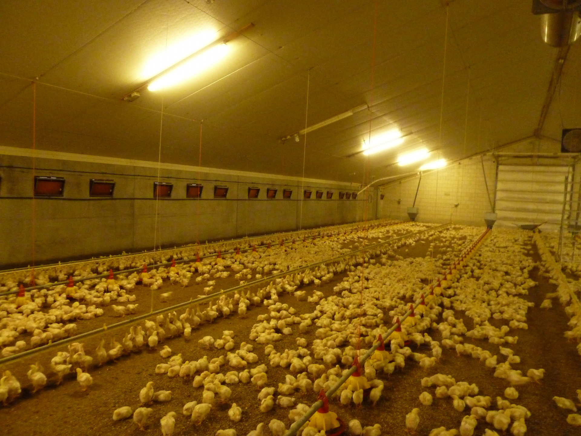 - Obr. 3 - Nefunkčná žiarivka dokáže zhoršiť rozloženie kurčiat po hale. Následne dochádza ku obtiažam s podstielkou.